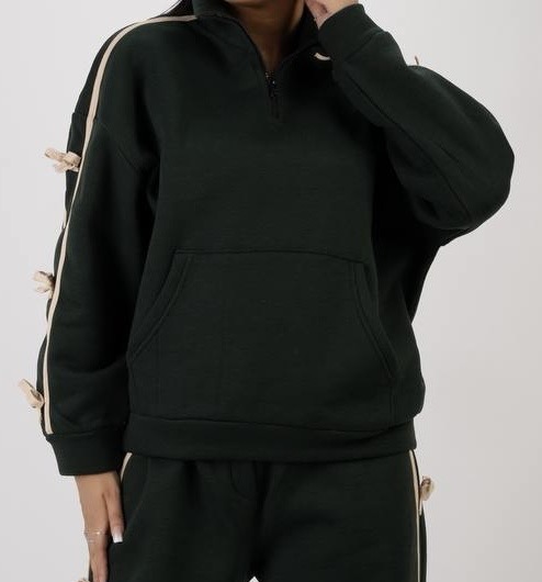 ست دورس و شلوار مدل زنانه نیم زیپ نوار پاپیونی جنس دورس تو کرکی