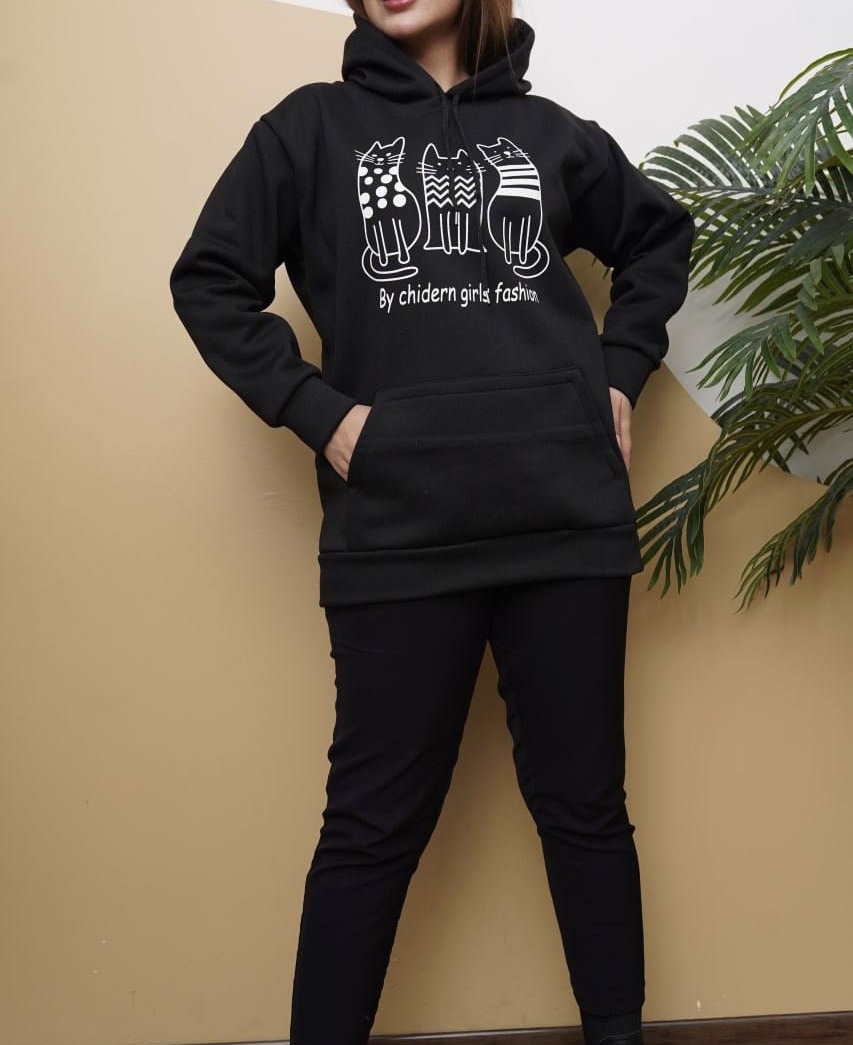 هودی تک رنگ چاپی زنانه جنس دورس تو کرکی