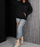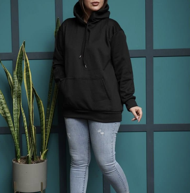 هودی تک رنگ مشکی مدل زنانه جنس دورس تو کرکی
