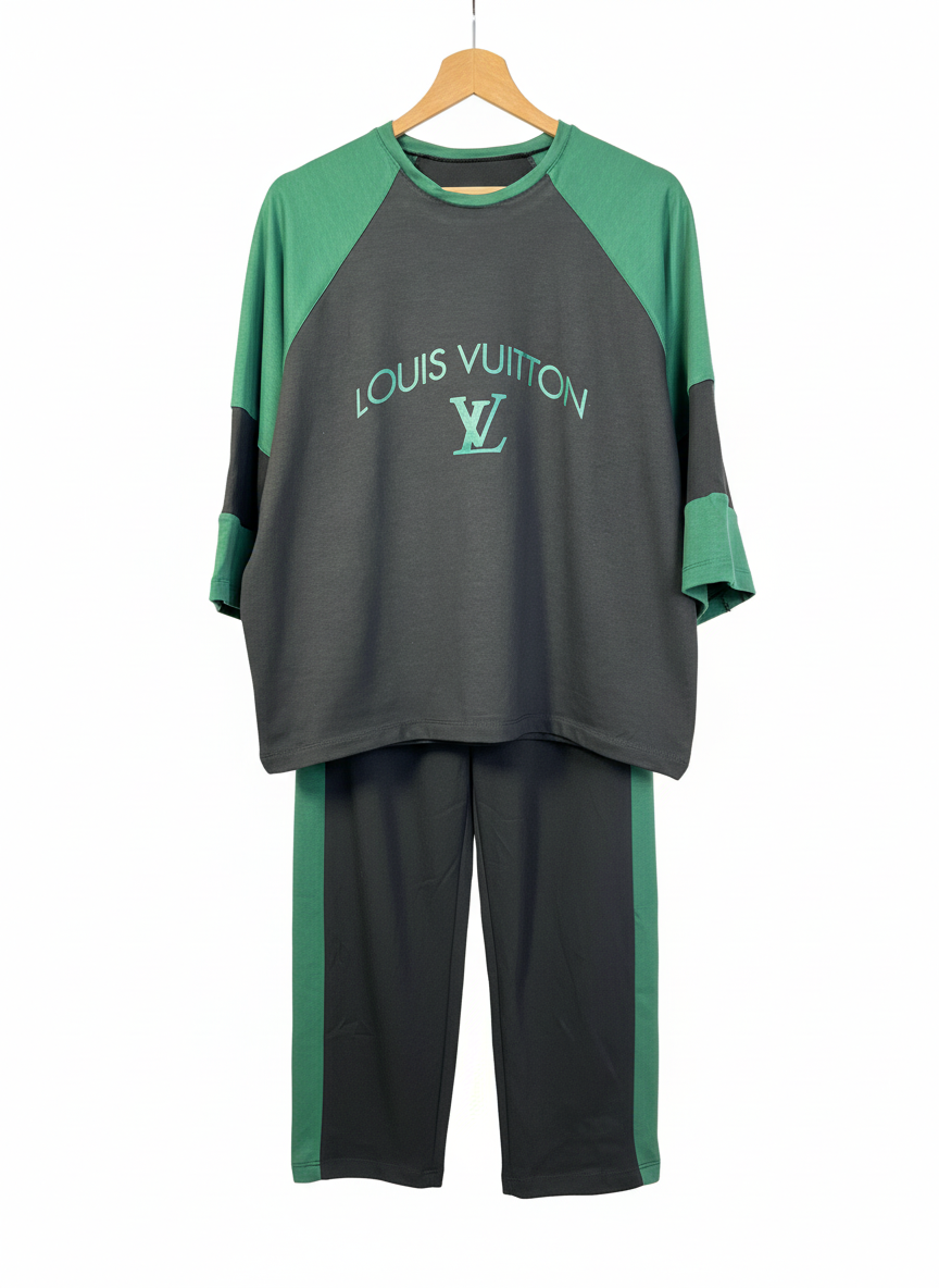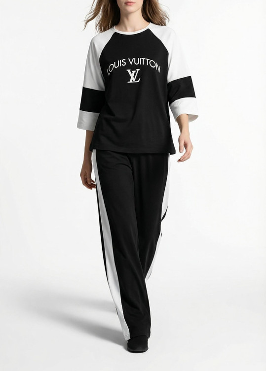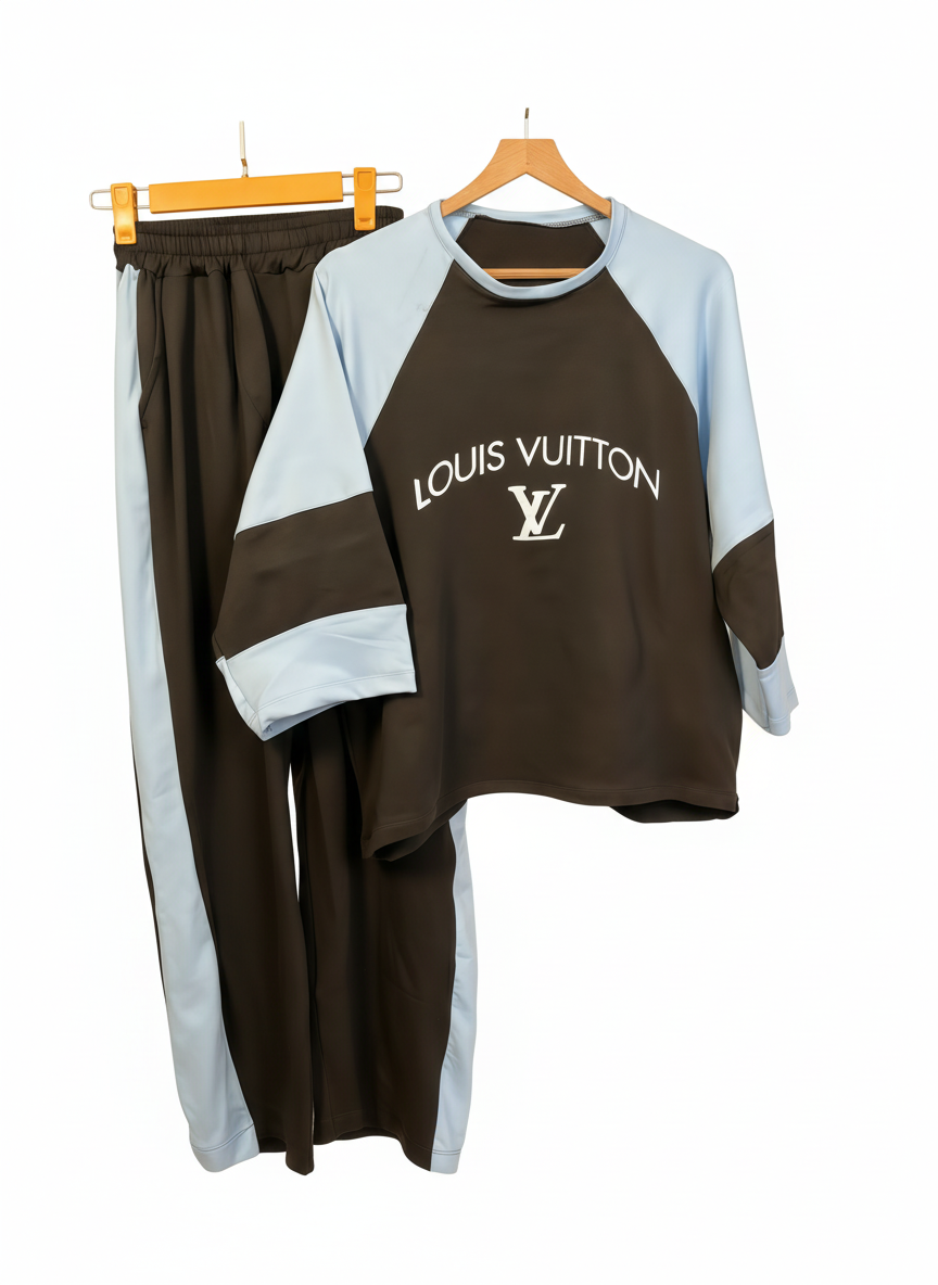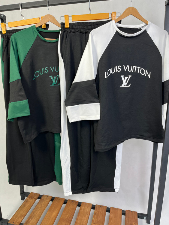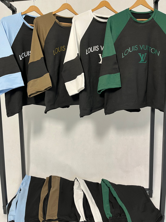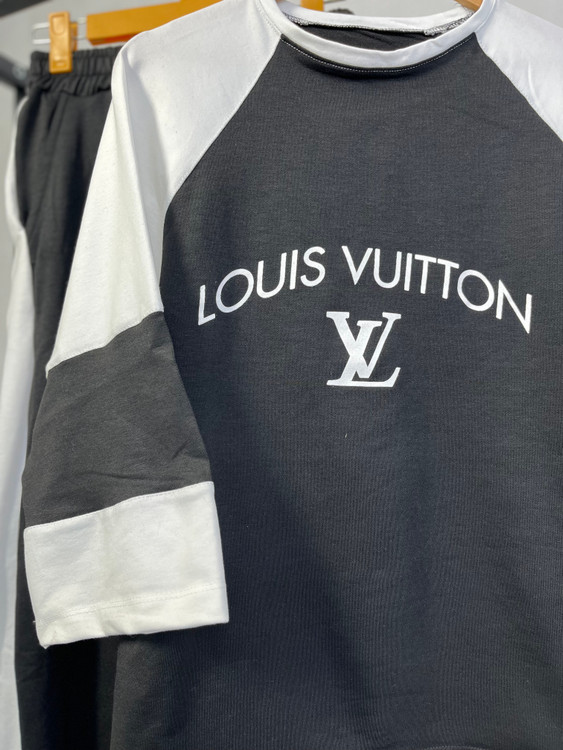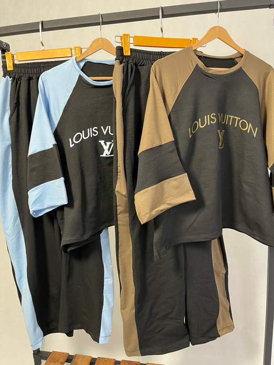 ست تیشرت و شلوار زنانه مدل لویس ویتون جنس پنبه گلکسی فری سایز