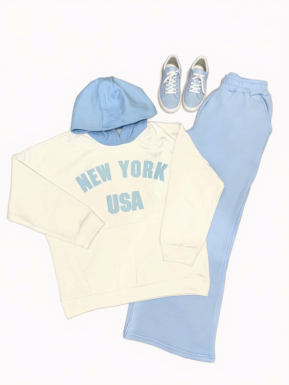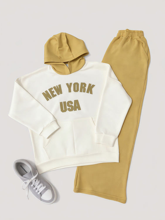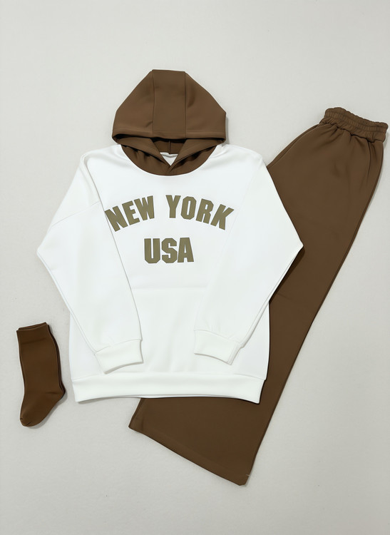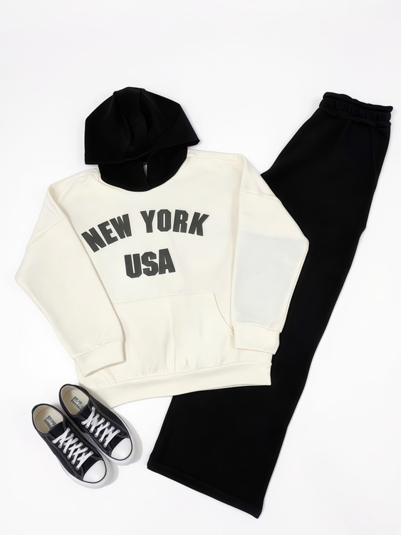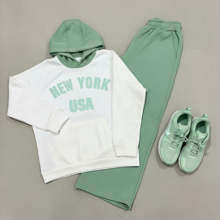 ست هودی و شلوار نیویورک که رنگ بندی جذاب و تنخور فوق العاده ای داره. این ست فری سایز هست و مناسب برای سایز ۳۸ تا ۴۶ است
