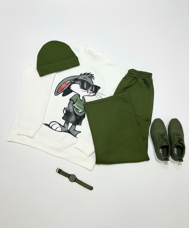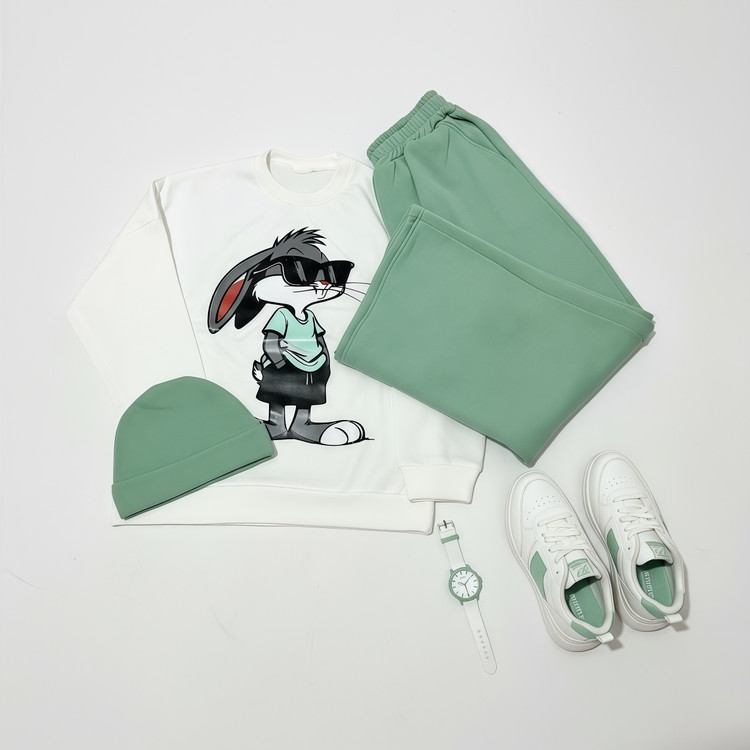 ست دورس و شلوار خرگوش جنس دورس تو کرکی رنگ بندی جذاب و تنخور فوق العاده ای داره👌🏻 دارای کلاه همرنگ شلوار که این ست رو خفن تر میکنه😍