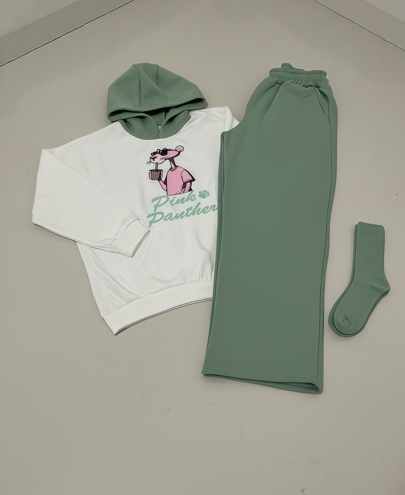هودی و شلوار زنانه مدل پلنگ صورتی جنس دورس تو کرکی